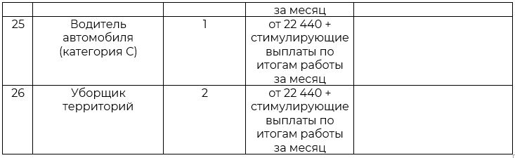 Для некоторых специальностей предусмотрены меры социальной поддержки, такие как: оплата съёмного жилья до 20 тыс. руб., предоставление служебного жилья.